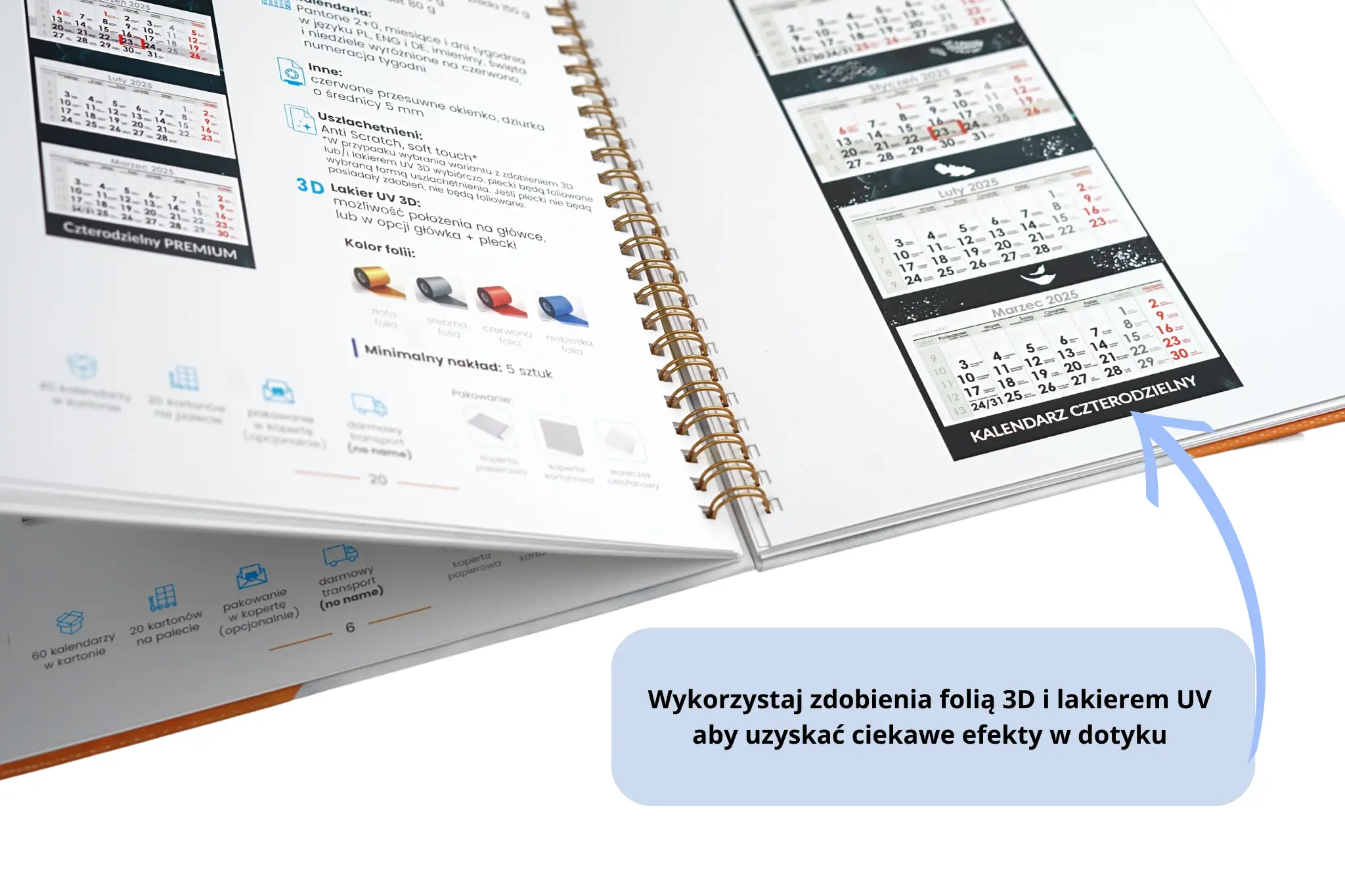 Stosowanie złocenia lub srebrzenia jest doskonałym wyborem dla firm pragnących podkreślić swój prestiż. Wykończenie to dodaje elegancji i wyrafinowania, a jednocześnie jest trwałe i odporne na zniszczenia, co zapewnia długotrwały efekt wizualny.